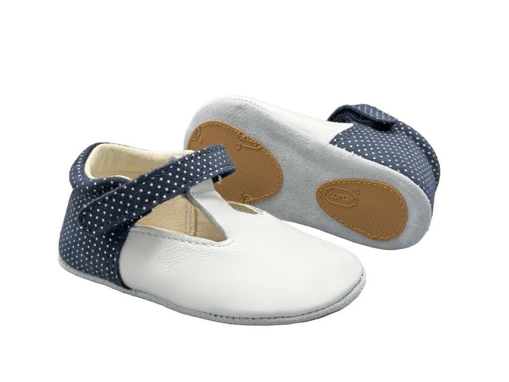 ellarte barefoot detské kožené capačky LITTLE Navy/White dotts