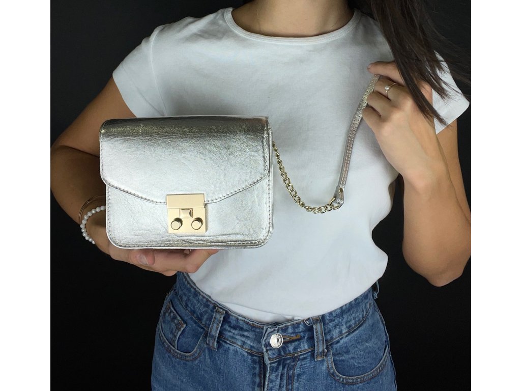 An always modern and trendy handbag in an unusual silver color made of high-quality chevro leather is guaranteed to attract everyone's attention. The touch of luxury is underlined by the gold-colored fittings. This handbag is definitely not afraid of any company, but it will also serve as an extravagant addition to an everyday outfit.